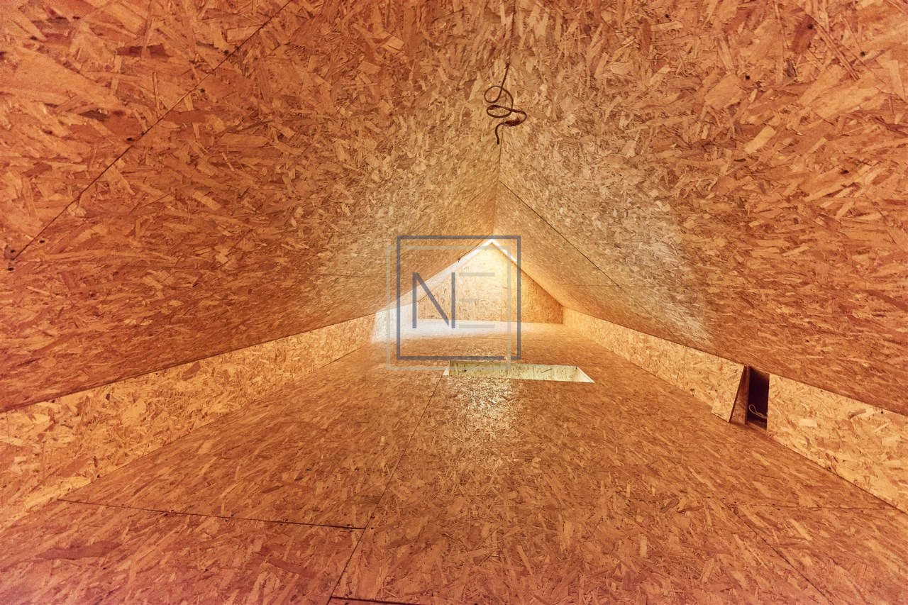 - dach: konstrukcja drewniana, kryty blachodachówka, izolowany wełną mineralną 25 cm, wykończony na zewnątrz podbitką drewnianą,