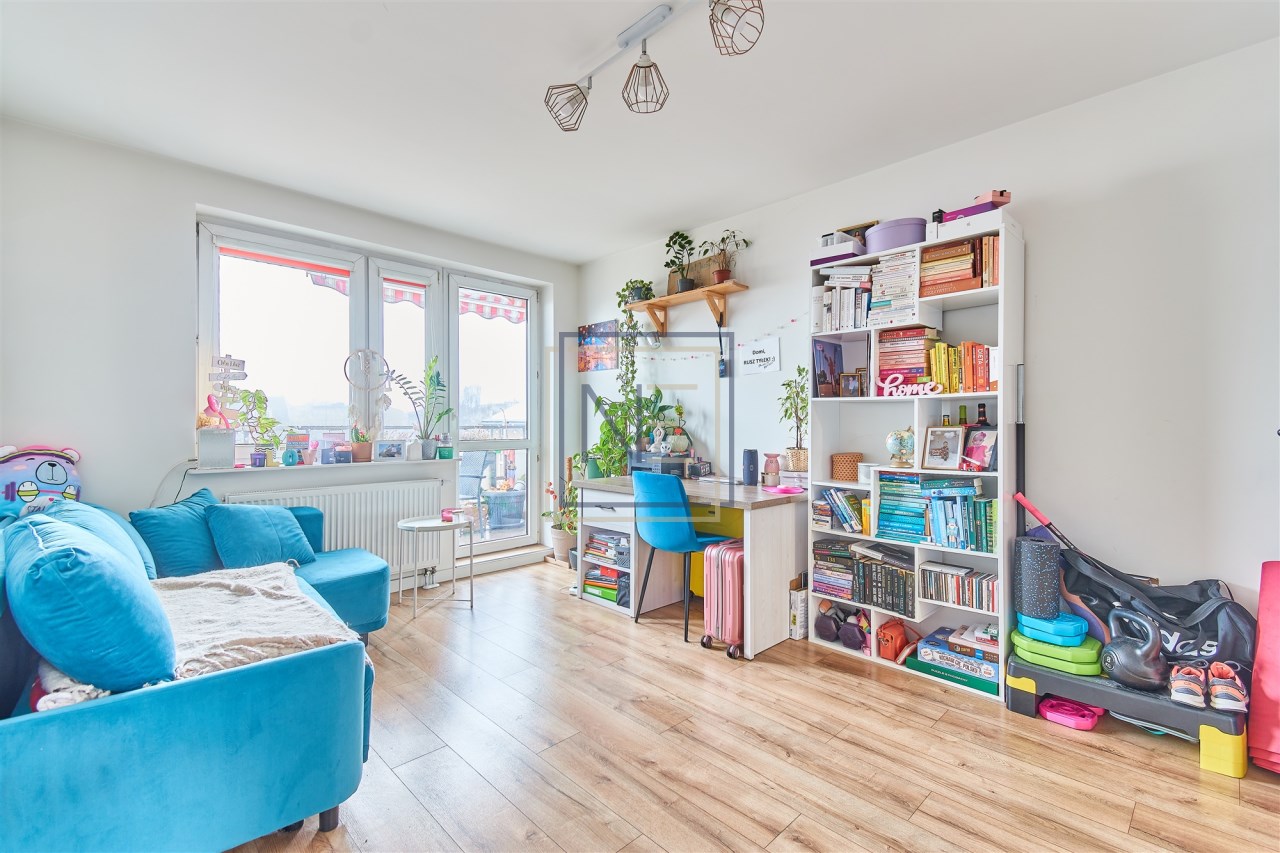 Salon powierzchni 16,7 m2 z przynależnym balkonem o powierzchni 3 m2 (ekspozycja zachodnia );