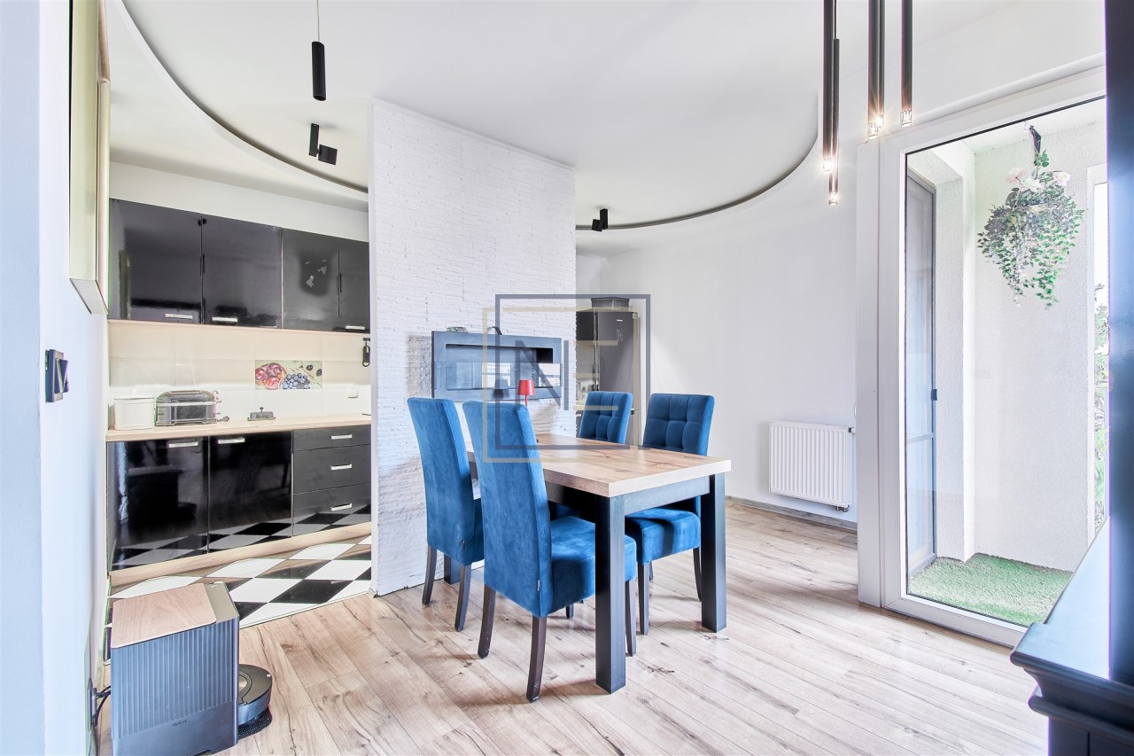 Posiada balkon o powierzchni 8 m2 na który wychodzi się przez jadalnię.