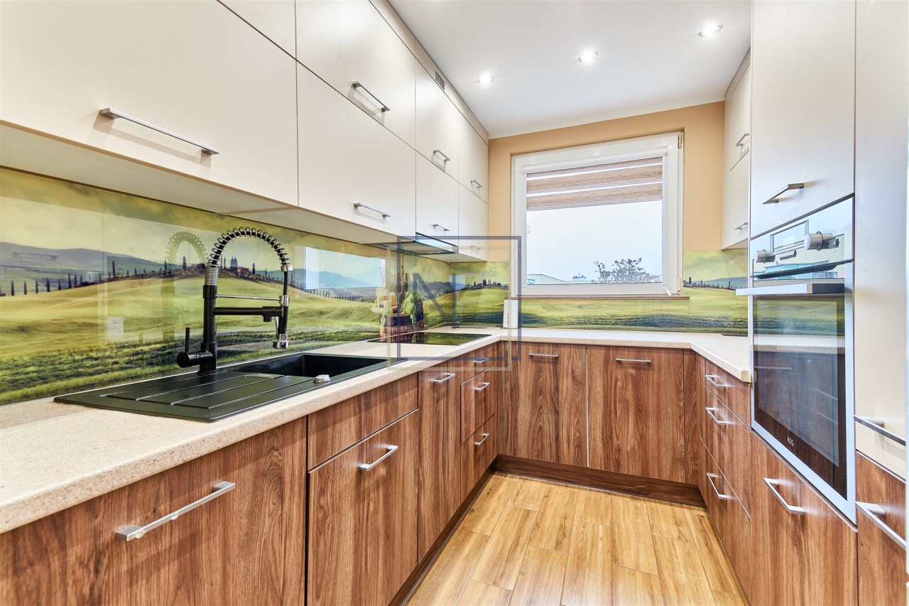 | Wyposażenie kuchni | zlewozmywak z baterią, płyta indukcyjna, piekarnik elektryczny, okap, meble kuchenne na wymiar, lodówko-zamrażarka, |