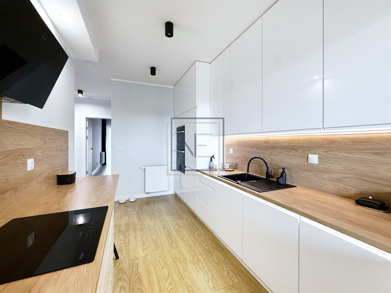 | Wyposażenie kuchni | piekarnik, okap kuchenny, lodówko-zamrażarka,, meble kuchenne na wymiar, zlewozmywak z baterią, płyta indukcyjna, zabudowa kuchenna |