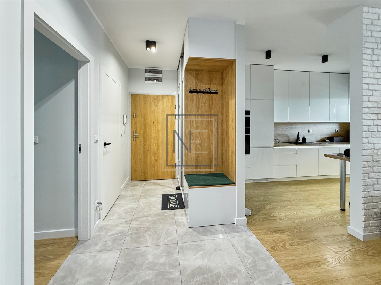 W mieszkaniu znajdują się rolety zewnętrzne i klimatyzacja sterowane z aplikacji, oraz w kuchni i łazience ledy na czujniki ruchu.